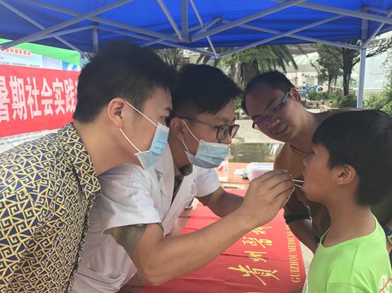 正式义诊活动于7月9日上午9点在云岩区大营坡中大国际社区宣传广场开始。志愿者和老师们早早就到现场进行布置,准备好棉签、口腔包等检查用具。活动开始后,学生志愿者们分布在各个点为来往的人们宣传本次义诊活动,发放口腔健康宣传册,13级的实习医生们则配合专业老师为前来就诊的群众细心检查,耐心解答各种口腔健康问题。此次义诊持续到下午两点,共计接受患者检查和咨询百余人,以儿童和中老年人为主。最后志愿者和老师们合影留恋,为此次义诊画下圆满句号。但欧洲杯正规下单平台的暑期社会实践还没有结束,接下来的一个月同学们将会在省内10余个地区开展口腔健康调研的问卷调查活动,预祝同学们一切顺利!