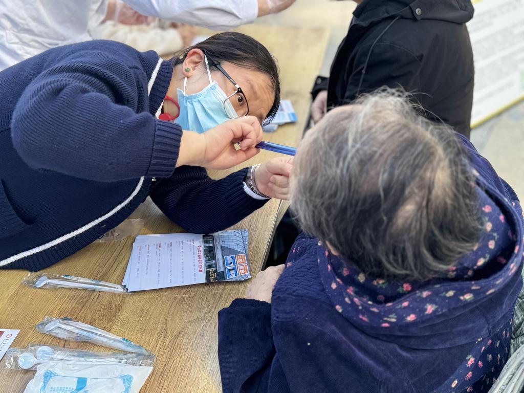 义诊现场,医生们认真细致地为每位老人进行口腔检查,针对性提出治疗与护理建议,同时提供免费测量血压服务,并发放宣传手册,帮助老年人增强自我保护及口腔保健意识。