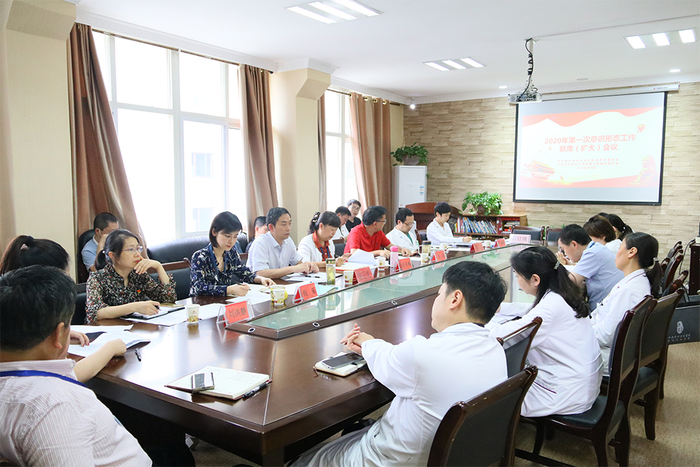 为进一步加强我院意识形态管理工作,6月10日,我院在北校区老药学楼五楼会议室召开2020年第一次意识形态工作联席(扩大)会议。院党政领导出席会议,各党支部书记、全院副科级以上干部(含副科级)、各临床医技科室、各行政职能部门主要负责人参加会议。