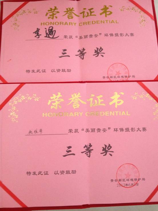 为了响应“六·五”世界环境日“思前、食后、厉行节约,减少你的耗粮足迹”以及中国世界环境日“同呼吸·共奋斗”的主题,贵安新区环保局等相关部门特组织以“美丽贵安”为主题的摄影大赛,号召学生从自己做起,从小事做起,推进节能减排,保护饮用水源,践行绿色生活,为建设美丽贵安新区贡献自己的一份力量。本次大赛得到社会各界的积极参与,我院2012级的李遇、钱胜奇两位同学积极参加了此次大赛。