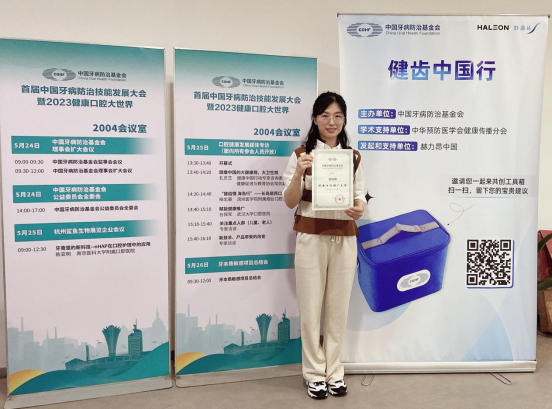 会后,卢虹带领黄明娜医生、袁倩护士参加了儿童龋病管理的培训学习,经过理论学习和技能考核,黄明娜、袁倩成功获得了由中国牙病防治基金会颁发的“健康口腔推广大使”荣誉称号。两位代表表示作为口腔健康推广大使,会积极宣传、推广、普及口腔健康知识,为口腔健康事业贡献自己的力量。