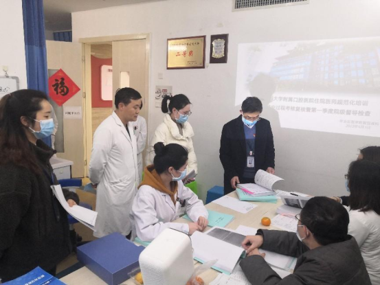 根据省卫健委《关于做好贵州省住院医师规范化培训过程考核的补充通知》等要求,为保证我省住培工作健康有序开展,4月1日下午,由副院长唐正龙、毕业后医学教育管理科科长廖健、各专业基地负责人组成结业过程复核专家组,到医院各专业基地办公室开展2022年结业过程考核复核暨第一季度院级督导检查工作,各专业基地教学主任及教学秘书等陪同检查。